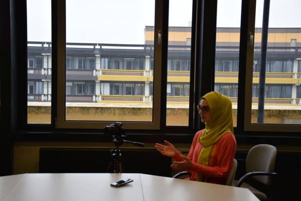 Die Studierende Evgenia Malyschkin führt ihr Interview auf Russisch und Deutsch
